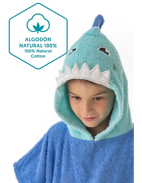 Poncho de baño de tejido 100% algodón natural.
