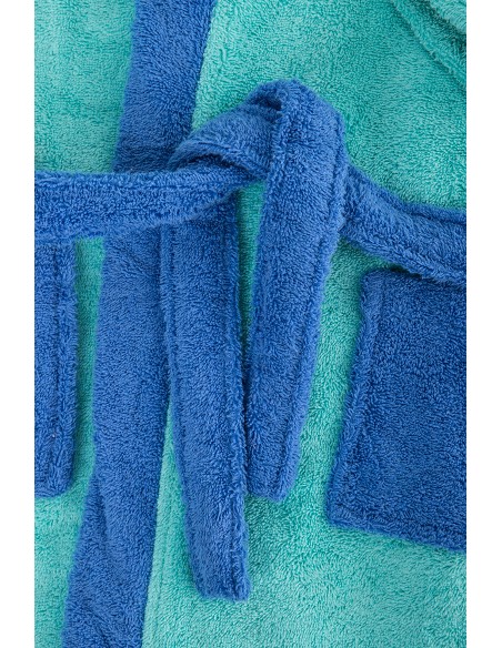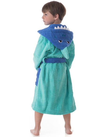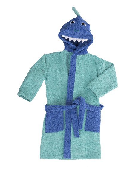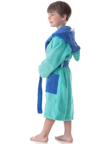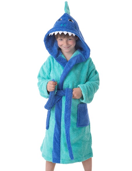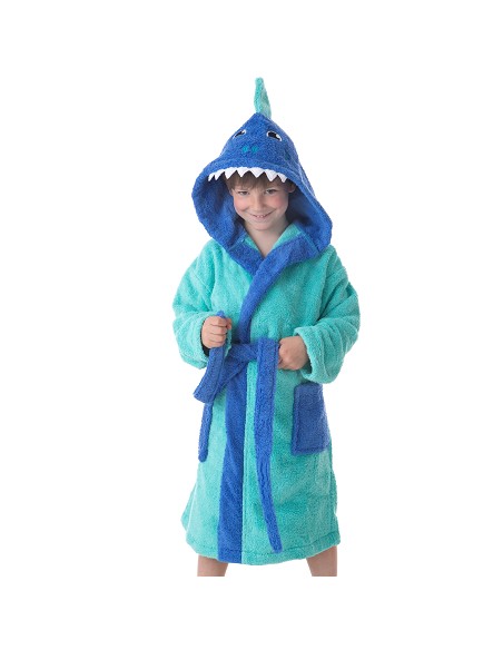Albornoz Baño Niño 100% Algodón con Capucha y Bolsillos Shark-Turq