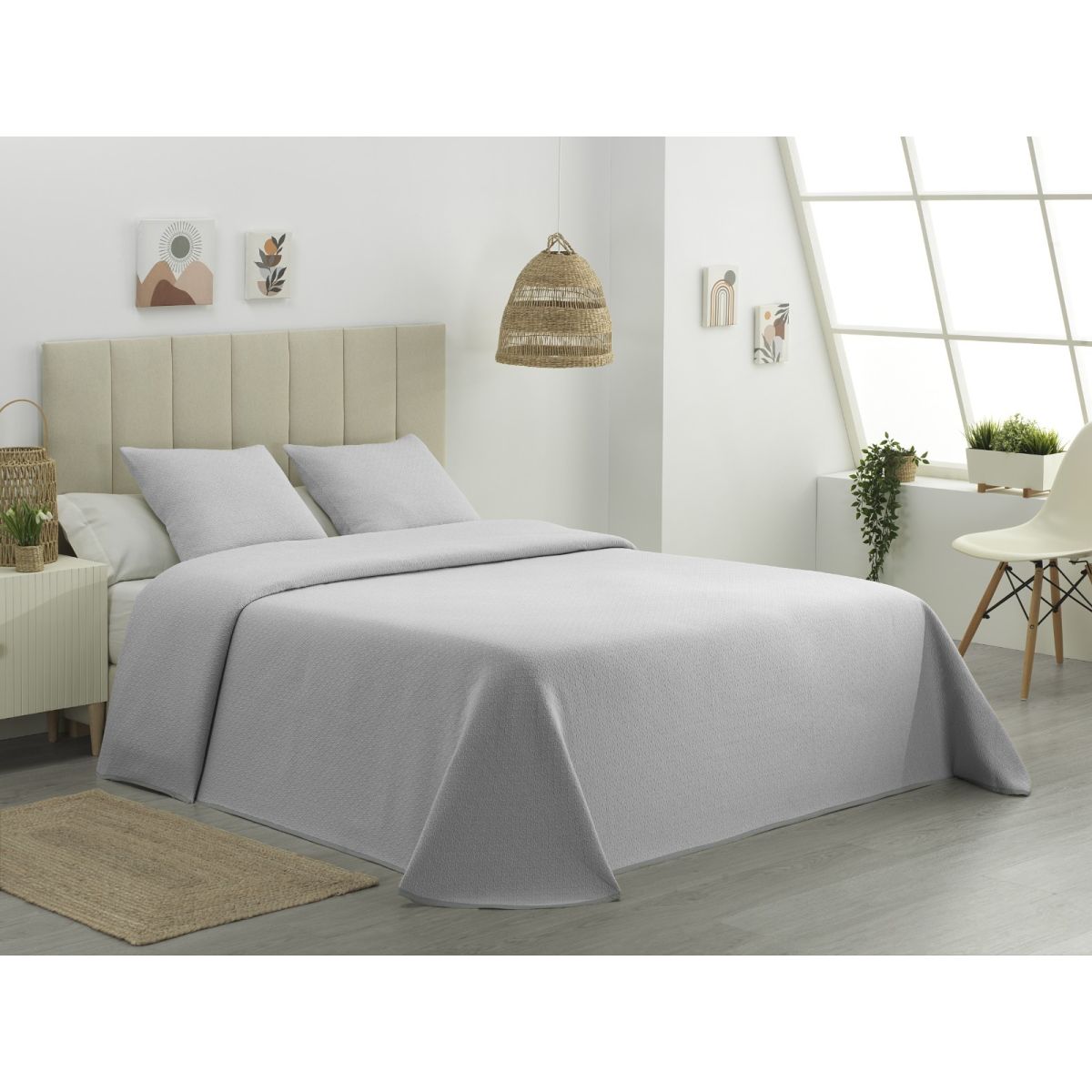 Colcha Piqué Aitana Gris Calidad Hotel Tejido Polialgodón
