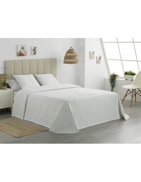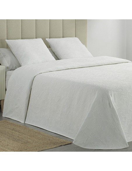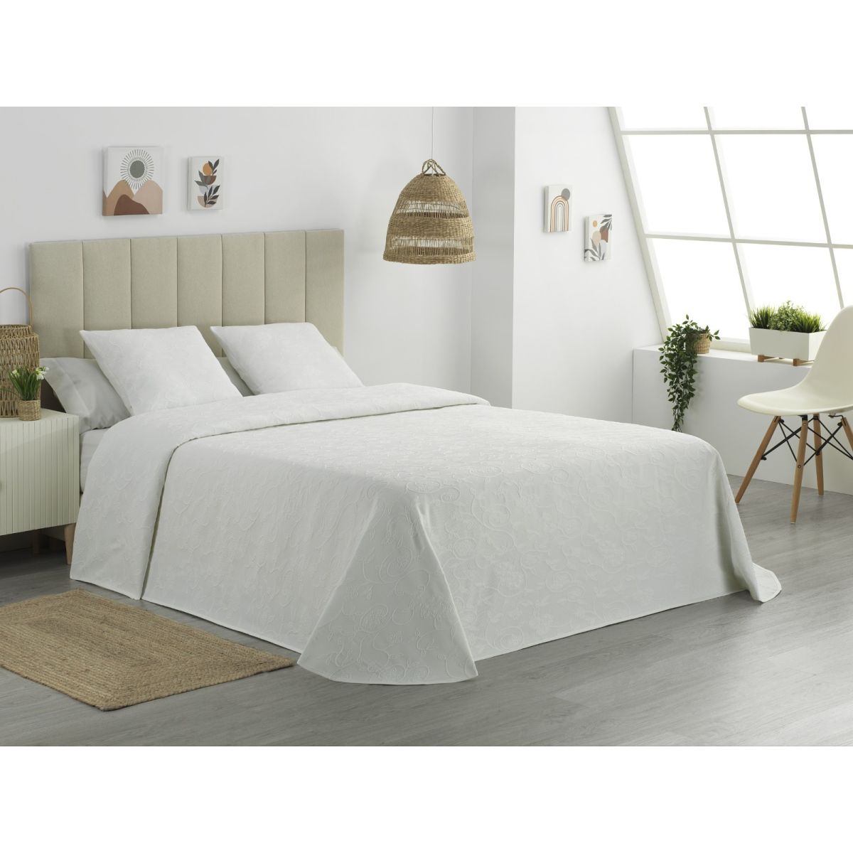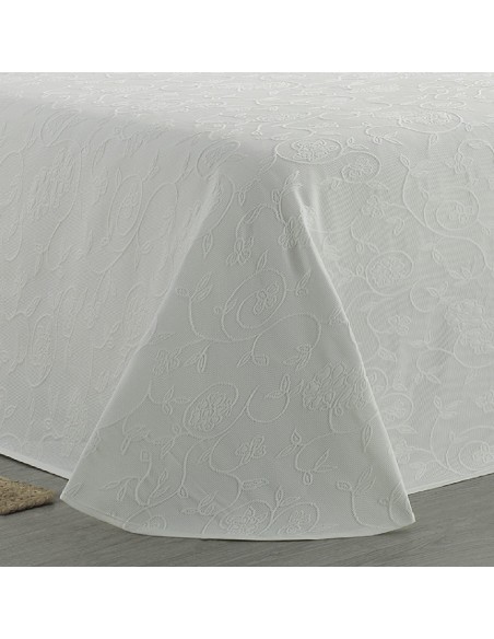 Colcha Piqué Flores Relieve Modelo Floritura Blanca