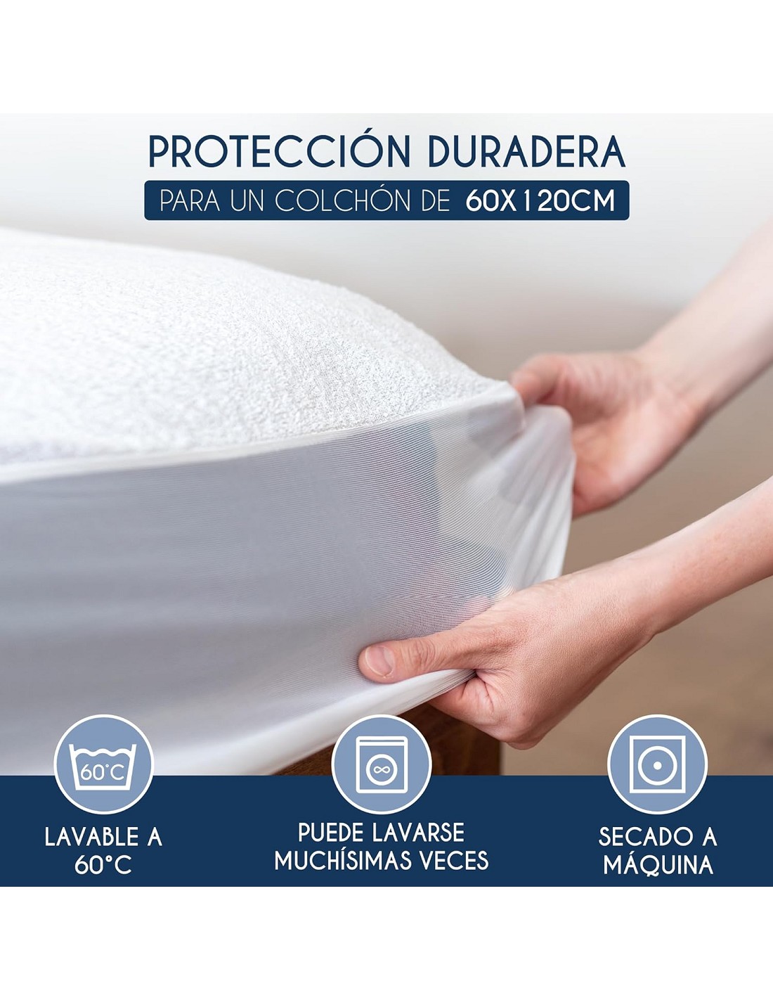 Disponible la sábana bajera blanca tejido 100% algodón natural y el protector de colchón impermeable.