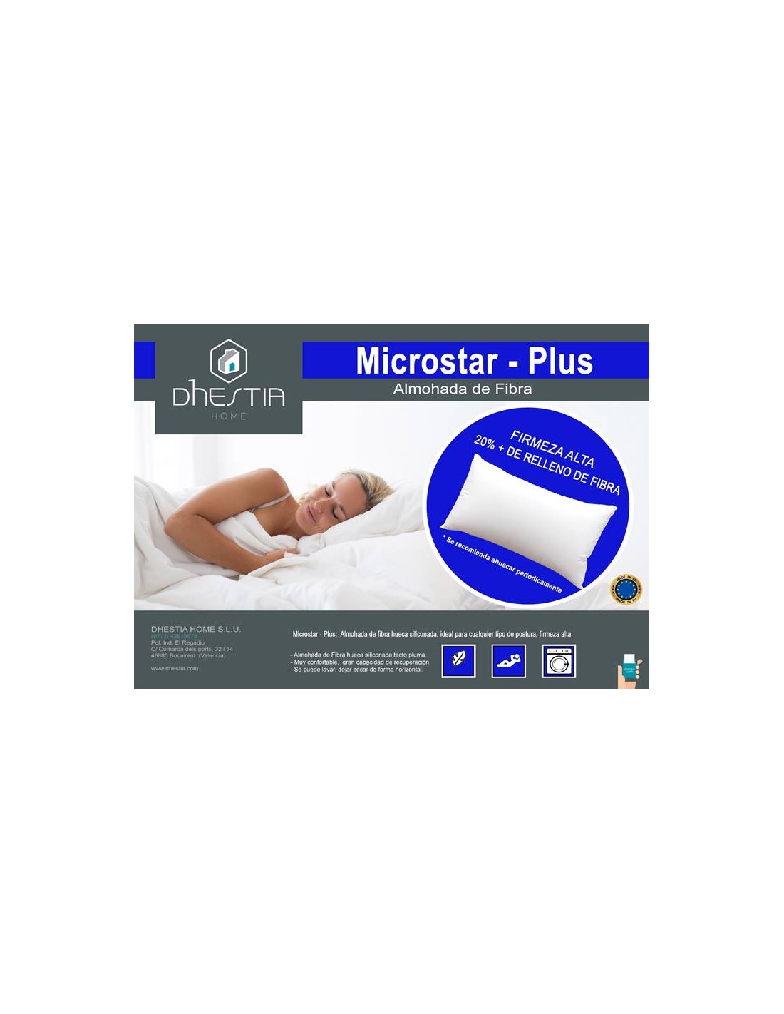 Almohada con núcleo de fibra hueca siliconada que se adapta perfectamente a nuestro cuerpo.