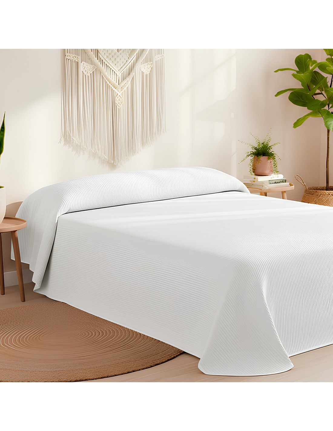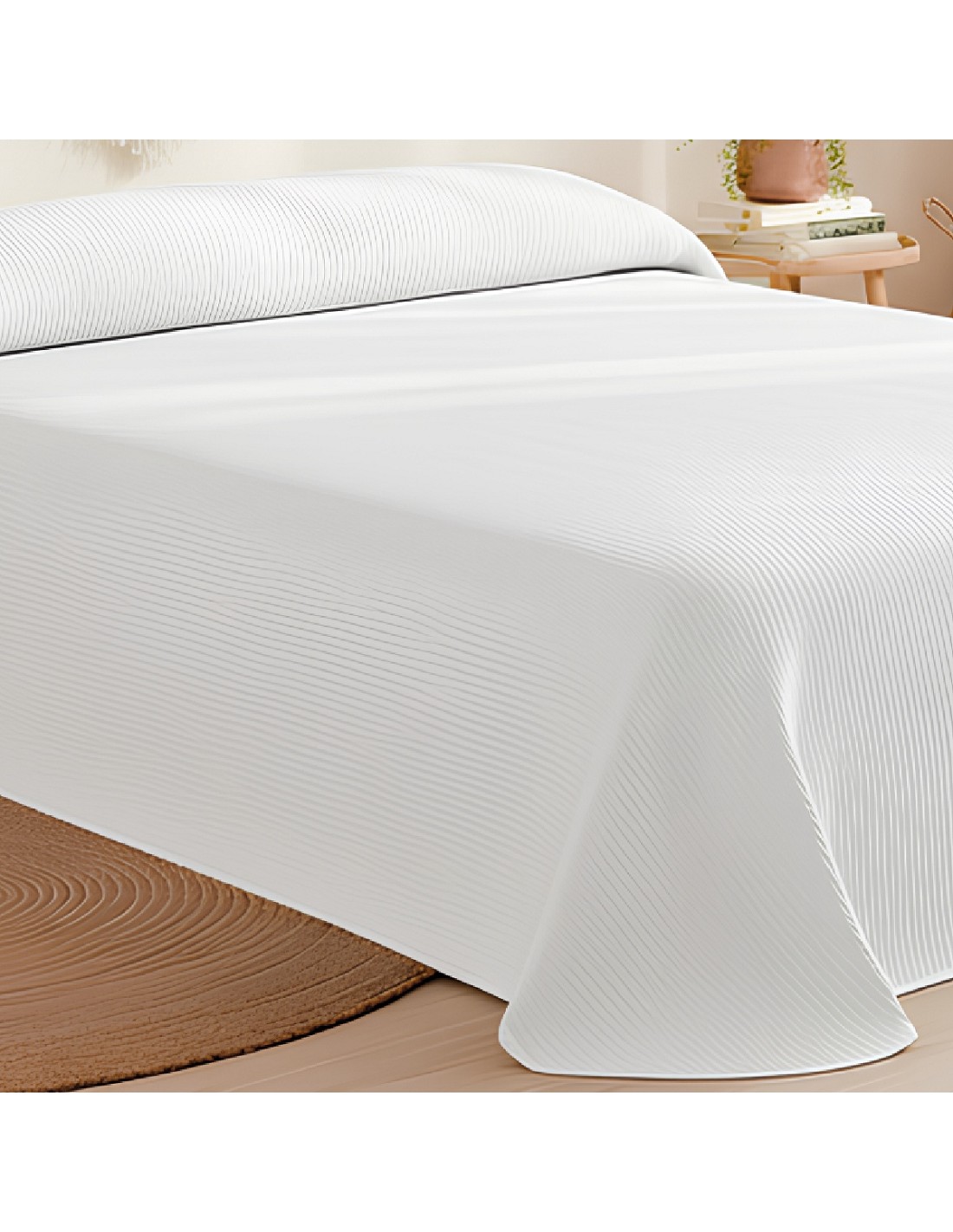 Colcha Piqué Hotel de Rayas Blanca en Relieve