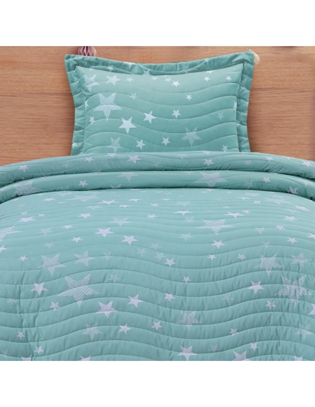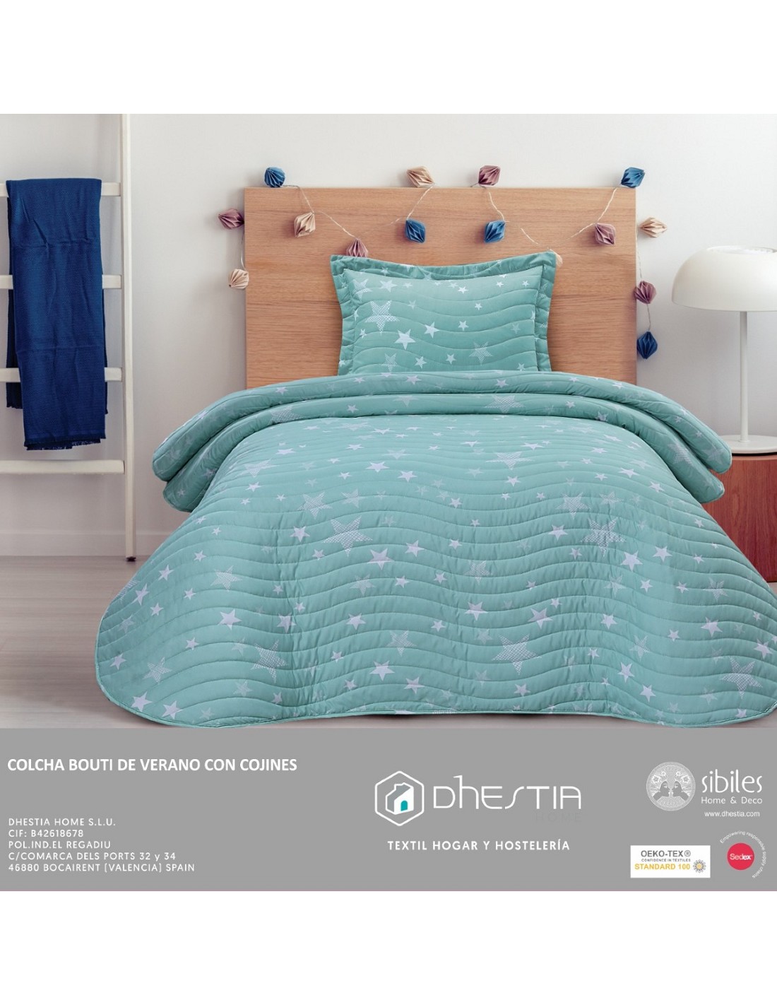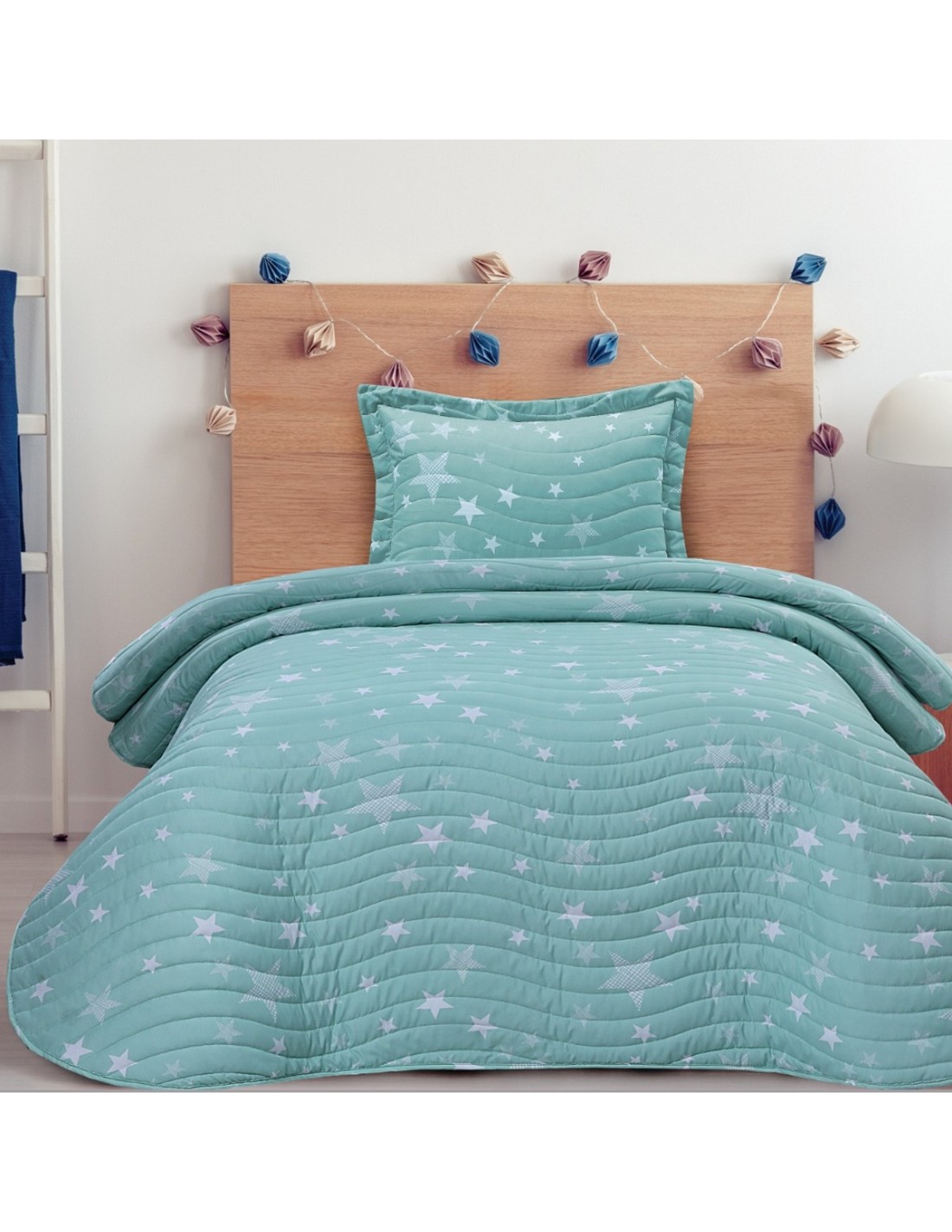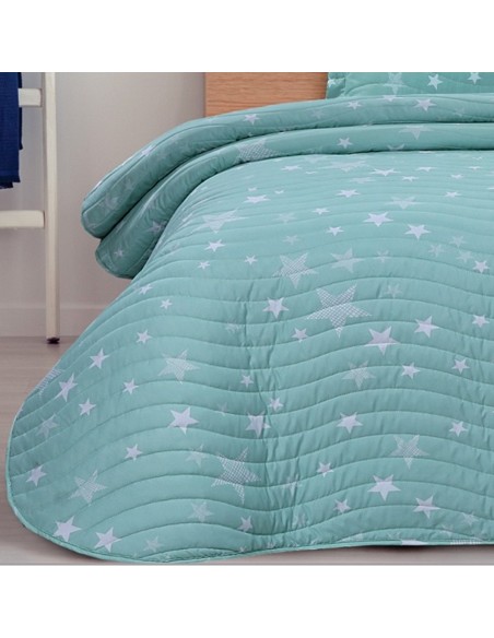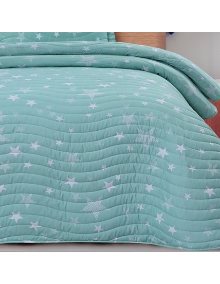 Colcha Bouti Cosida Infantil y Juvenil con Cojín Modelo Estrellas Stars Agua