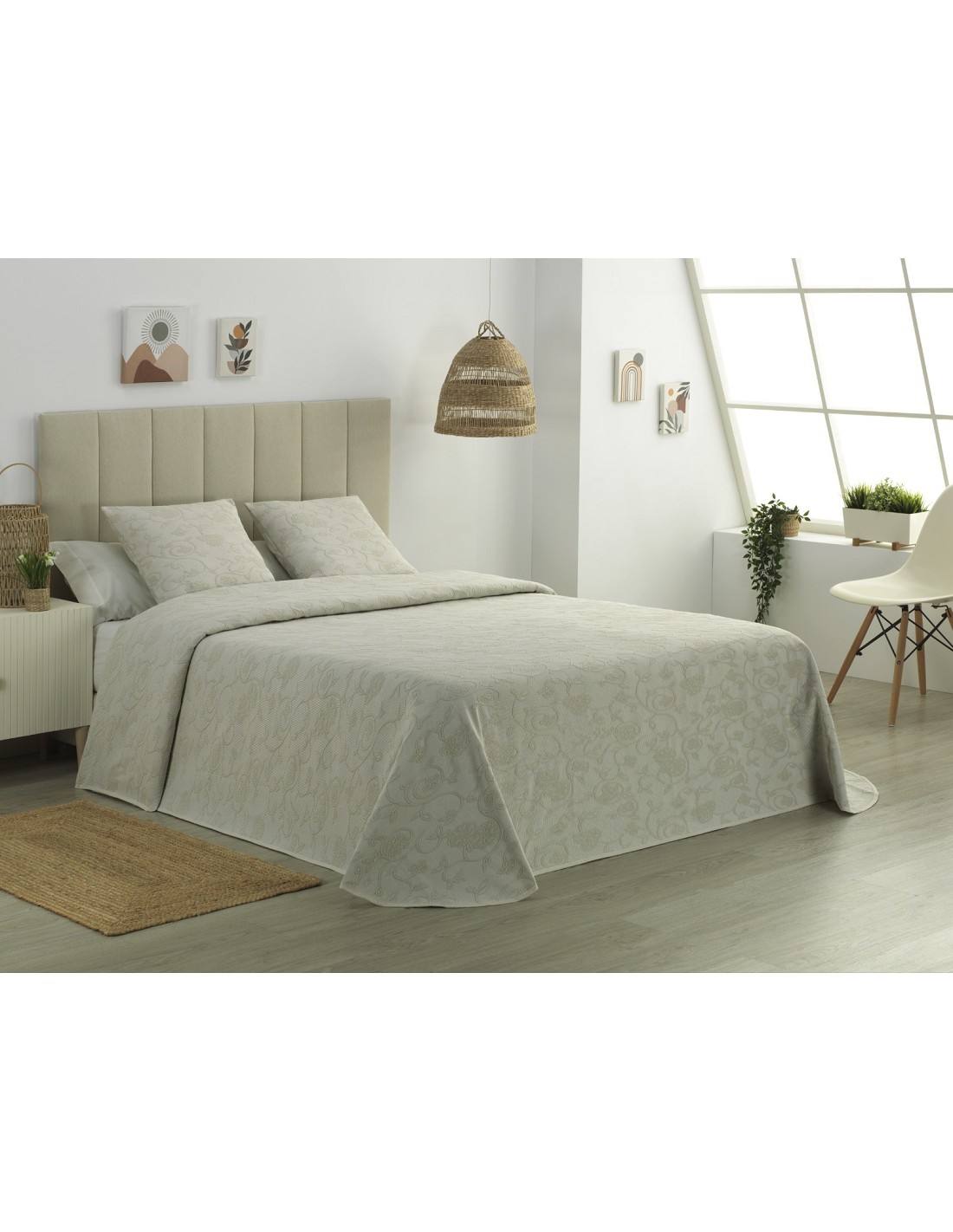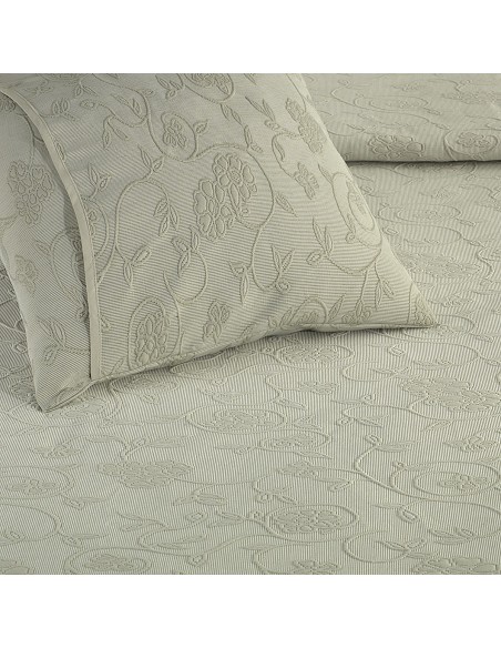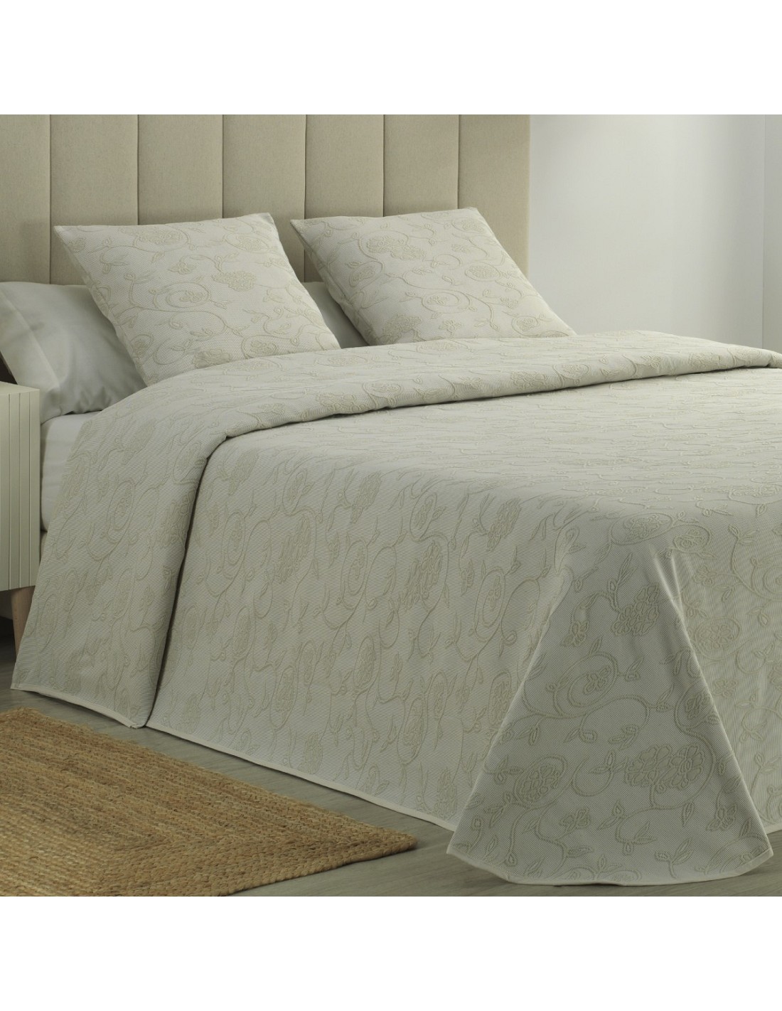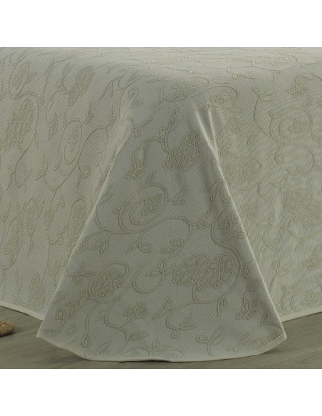 Colcha Piqué Flores en Relieve Modelo Floritura Beige