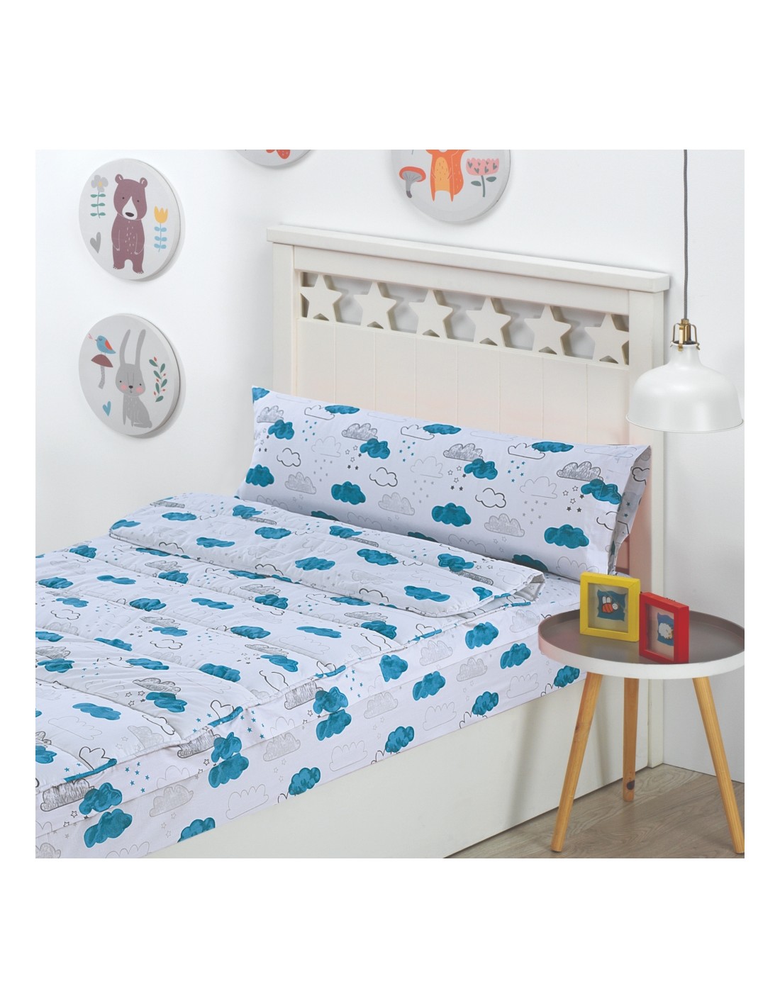 Saco Nórdico con Cremallera para Cama 90 Infantil y Cama 105 Nubes Agua