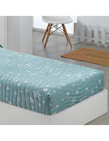 Colcha bouti con patrón formando unas suaves olas cosidas con hilo, duradera y de gran calidad a diferencia de patrones termosellados.