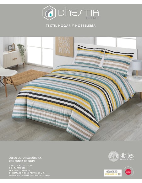 Funda Nórdica a Rayas con Cojines Decorativos Modelo Bari