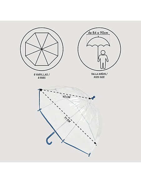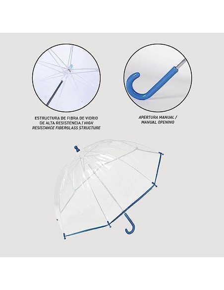 - RESISTENTE: las varillas especiales de fibra de vidrio hacen que el paraguas sea estable, ligero y sólido incluso a las ráfagas de viento más fuertes sin riesgo de romperse o volcarse.