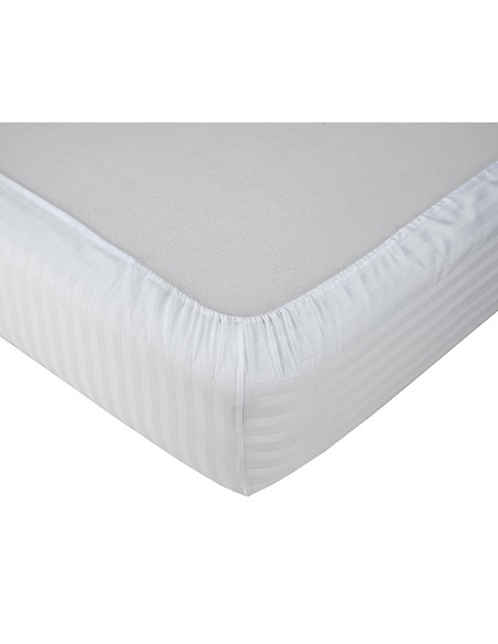 • Tejido Satén Percal 200 Hilos muy suave que combina rayas de 1,5 cm en blanco brillo y mate. que resaltan su elegancia.