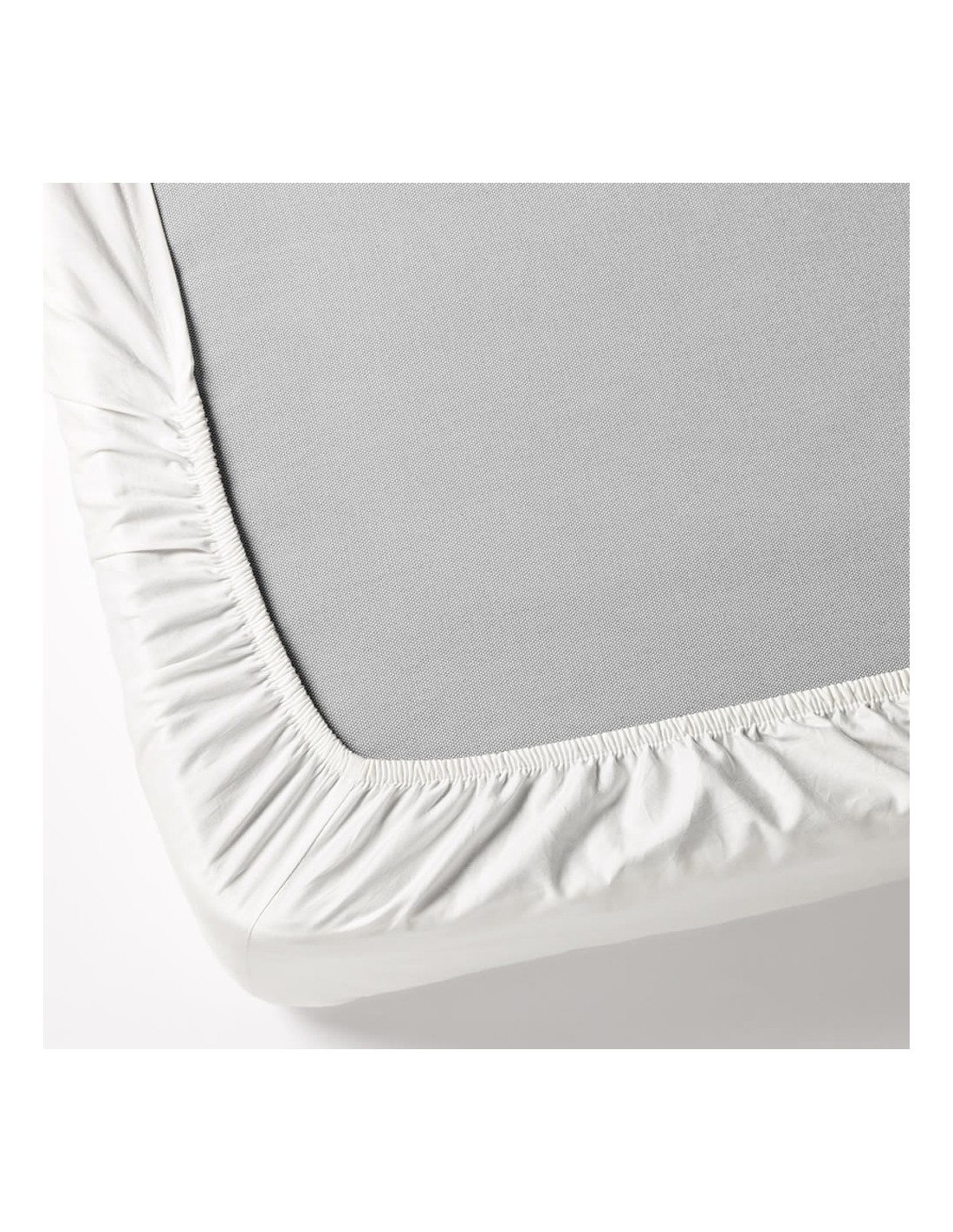 Sábana bajera blanca de tejido 100% poliéster.