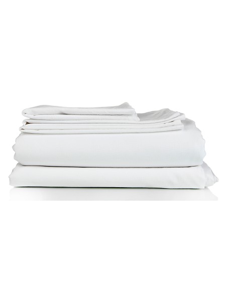 Juego de sábanas blancas polialgodón compuesto por 3 piezas o 4 piezas según medida.