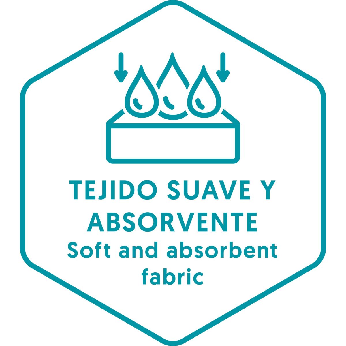 Tejido aterciopelado en 1 cara y tejido rizo para un buen secado en la cara posterior.